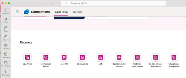 - Ao acessar o TEAMS, clique em ÓRBITA e, depois em SOU Ânima, conforme tutorial.