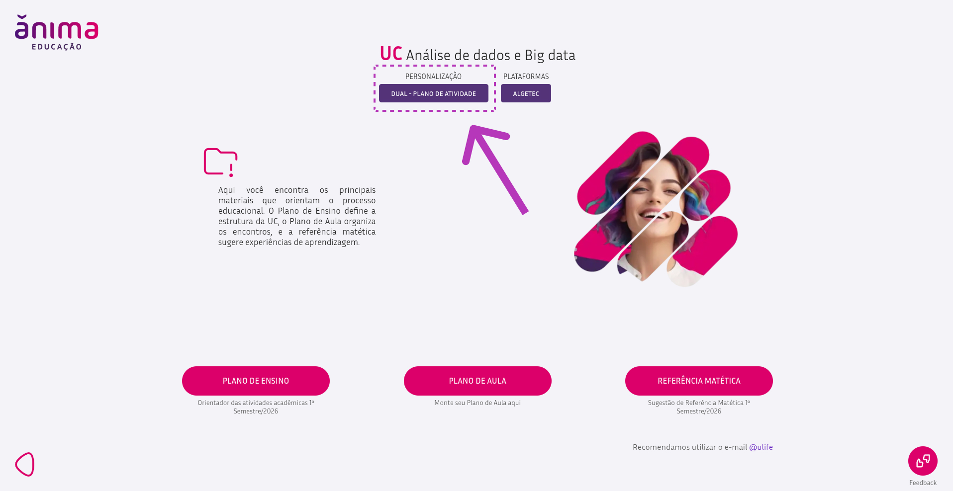Para identificar o Plano de Atividades Dual, acesse a Bússola das UCs, selecione a Unidade Curricular desejada e, no topo da página do componente, localize o botão de acesso ao plano de atividades Dual.