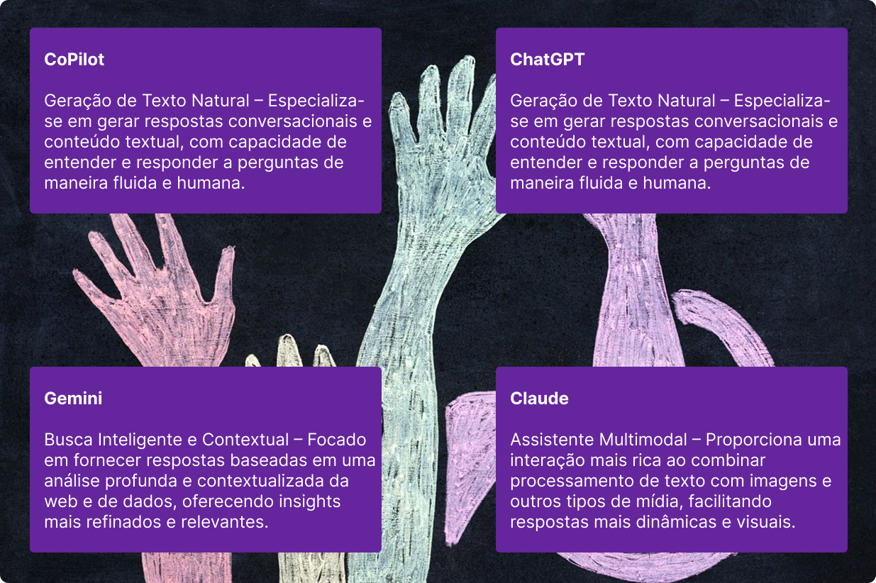 - Comparar plataformas de IA conversacional como ChatGPT, CoPilot, Gemini e Claude.